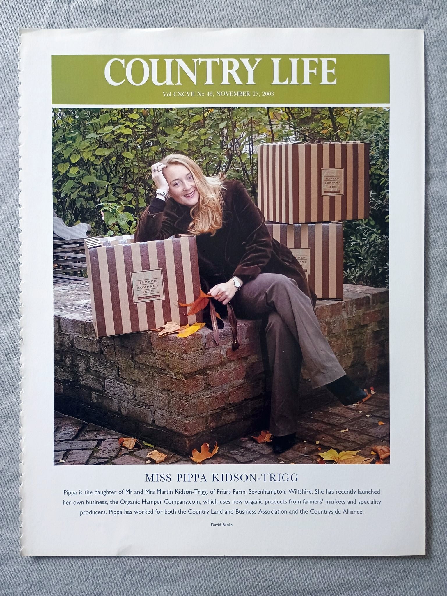Miss Pippa Kidson-Trigg Country Life Magazine Portrait, Frontispiece, November 27, 2003. CXCVII No. 48