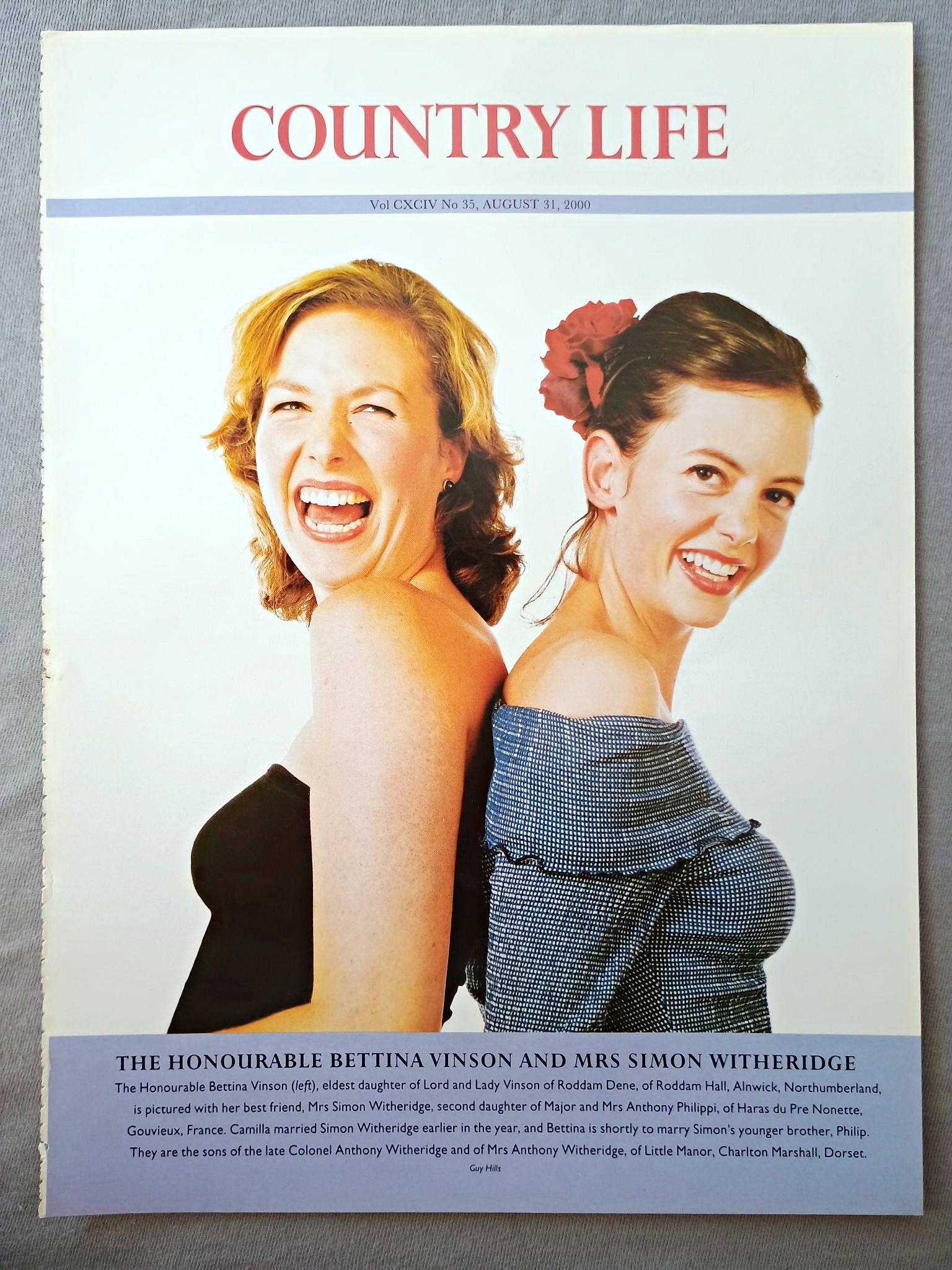 The Honourable Bettina Vinson and Mrs Simon Witheridge nee Camilla Philippi Country Life Magazine Portrait, Frontispiece, August 31, 2000. CXCIV No. 35