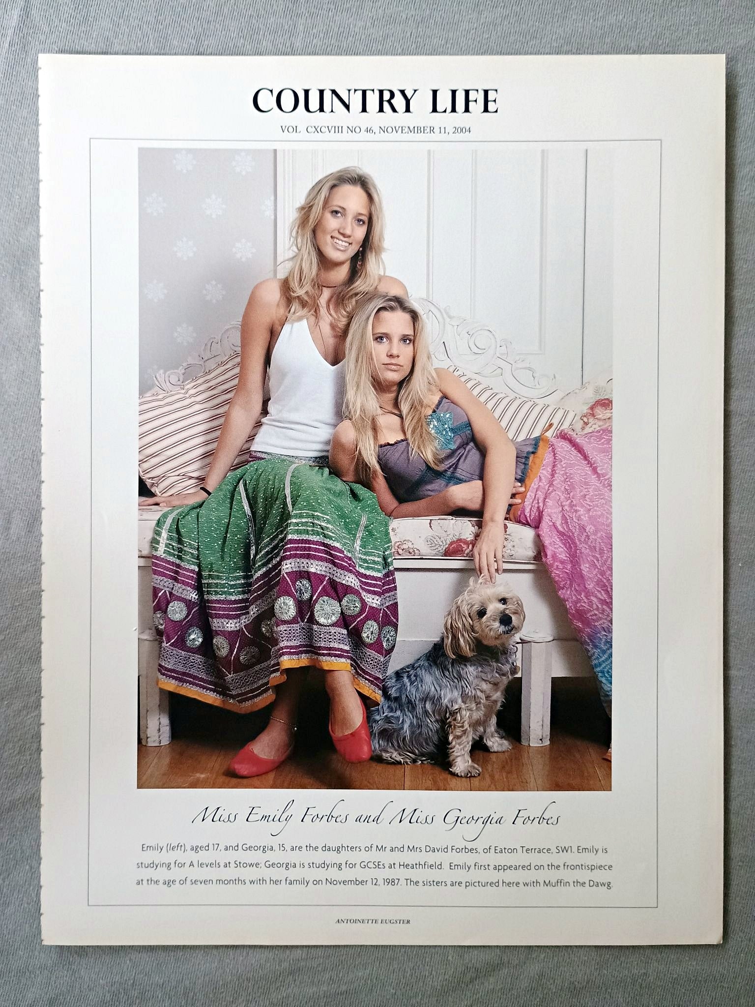 Miss Emily Forbes and Miss Georgia Forbes Country Life Magazine Portrait, Frontispiece, November 11 2004. CXCVIII No. 46