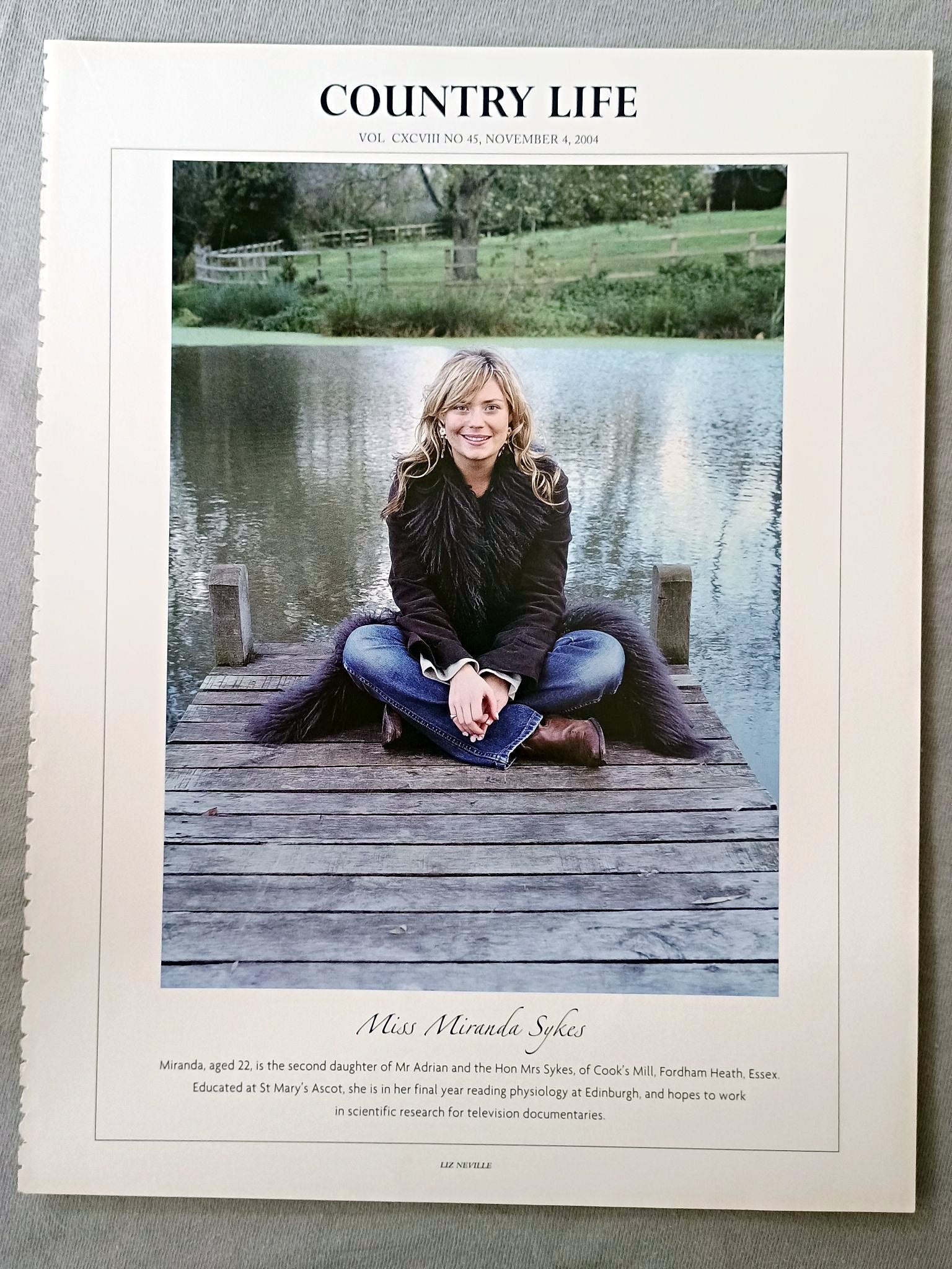 Miss Miranda Sykes Country Life Magazine Portrait, Frontispiece, November 4 2004. CXCVIII No. 45