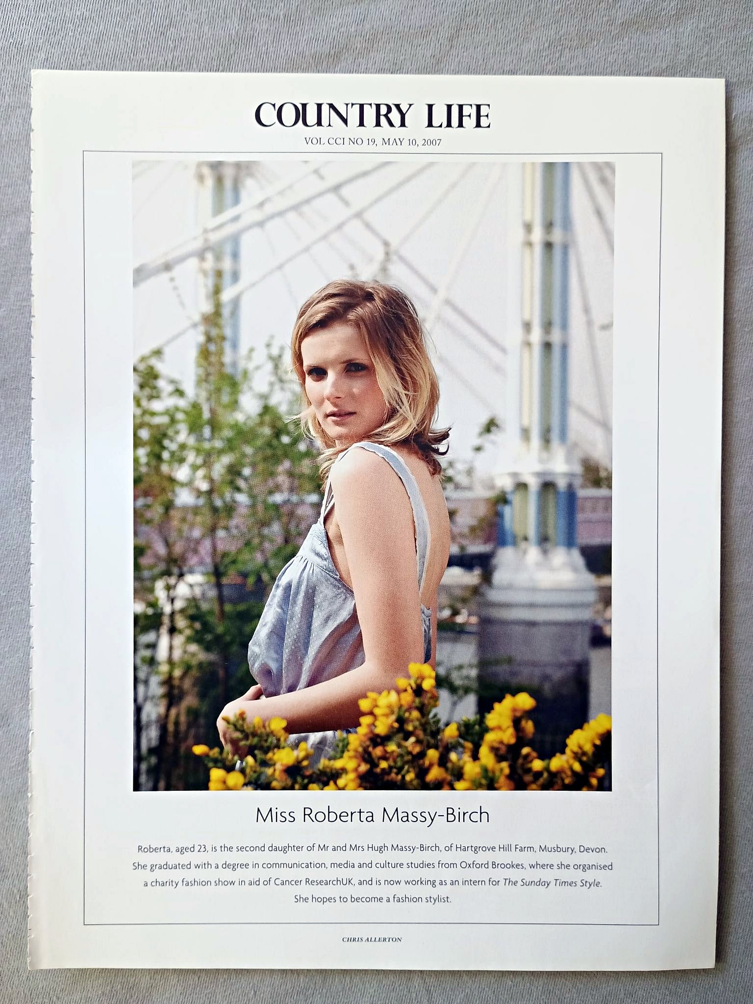 Miss Roberta Massy-Birch Country Life Magazine Portrait, Frontispiece, May 10 2007. CCI No. 19